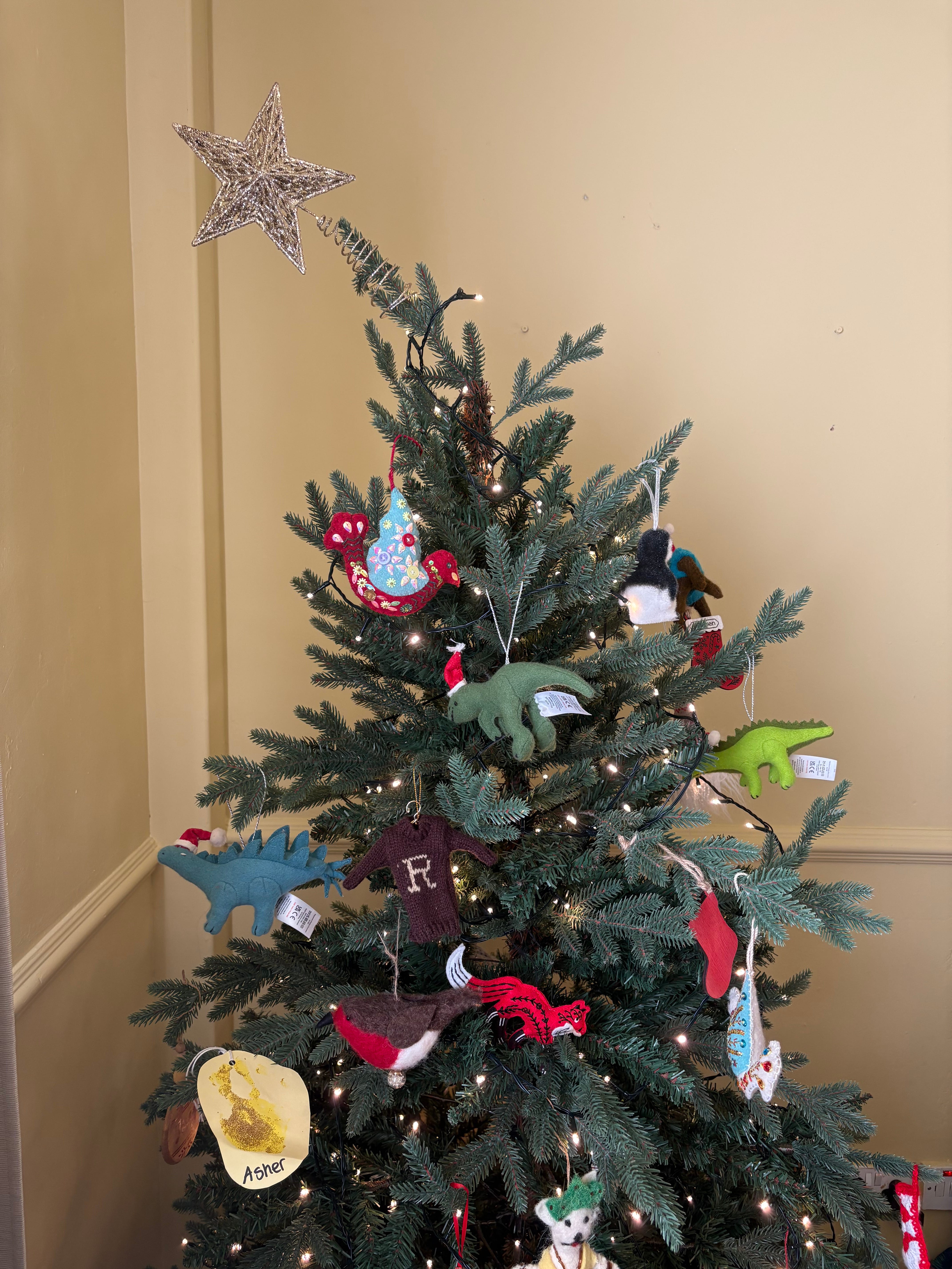 Finally, we finished stripping the wallpaper and celebrated by painting the living room a buttery yellow. Rogue choice, but this is where the younger boys do all their playing, so it seemed right to make it bright. The sagging star is also fitting.