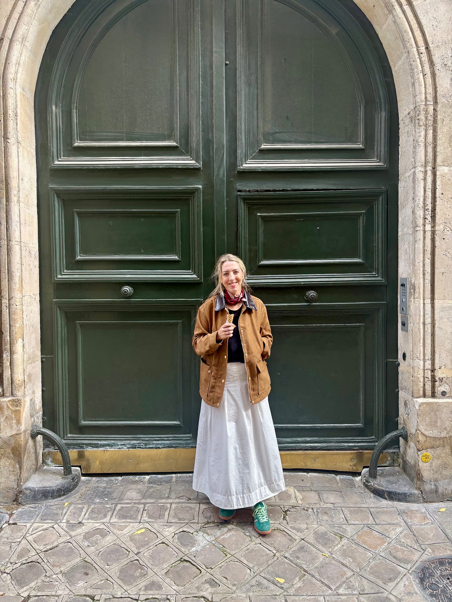 I’ll leave you with a link to the brown suede jacket of dreams, worn below with one of my favourite outfits, eating my favourite sorbet, in my favourite place, with my favourite person; but usually worn with leggings and an oversized knit on the school run—which works just lovely, too!
